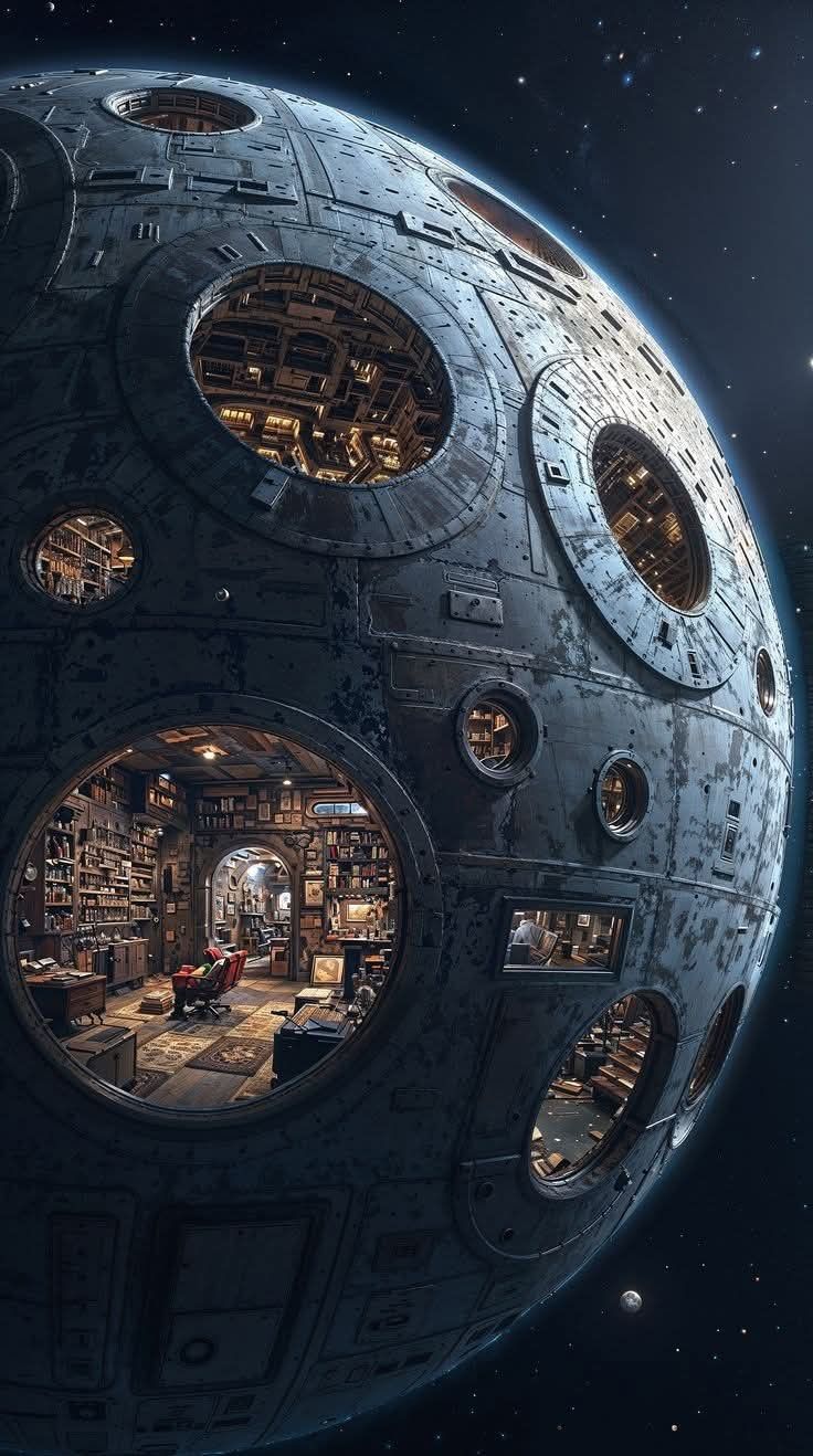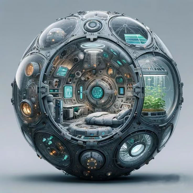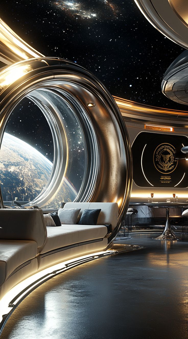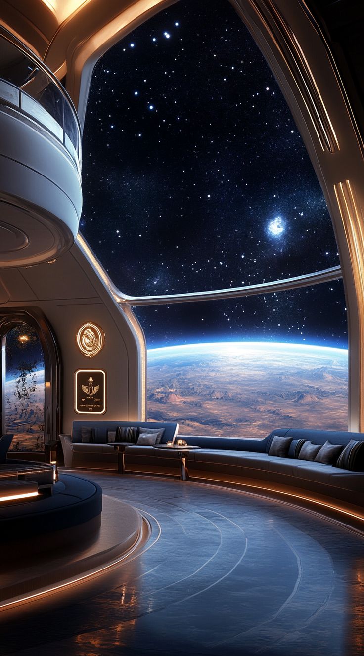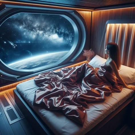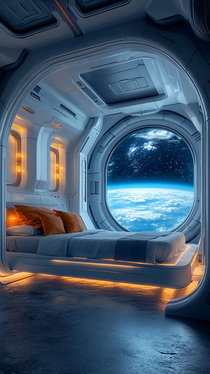 bedroom window in spaceship.