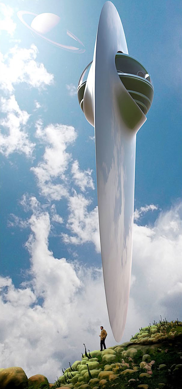 Spacecraft emerging from the sea.