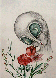 Zeichnung des Ausländers von Zeta-Reticulis mit einem Kind.