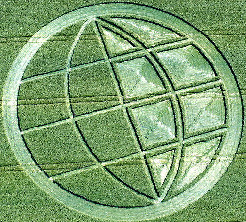 This pictures shows marks in cornfields generated by aliens using interdimensional technology.